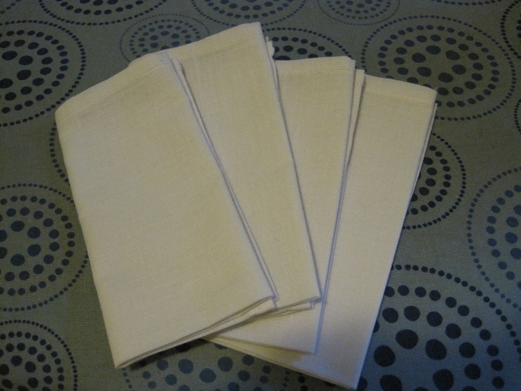 2011-04-02 03Meanwhile, with the offcuts from the mitred corners of the fitted sheets I made 4 small serviettes.  They are lovely strong cotton and 2 of the sides were already hemmed (from being the edge of the sheet) so it was a simple matter of hemming the other 2 sides.  These will be perfect for our picnic lunch kit which we will take with us when we travel in a few weeks time.