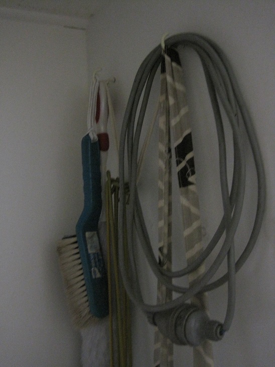 2011-04-13 03On the other side are hooks and a cord to hang feather duster, brush, extension cord, bag of mini vacuum accessories and hangers for drying knitwear.