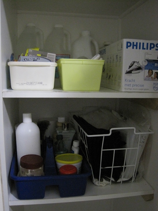 Here are the photos of my organised laundry cupboard.  Not all of my house is like this – far from it, but this is how I would like it all.