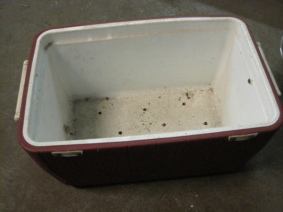 EskyThis is an old esky that the drain hole plug had broken as well as one of the lid attachments.  I removed the lid and drilled some large holes in the base.  I plan to grow some more of the bok choy in this, but more importantly, it will be useful for growing lettuce during the summer.  I will be able to move it out of the hottest part of the garden and into some semi-shade when required and also put it under the house to avoid the lettuce becoming water-logged during our heavy summer rains.