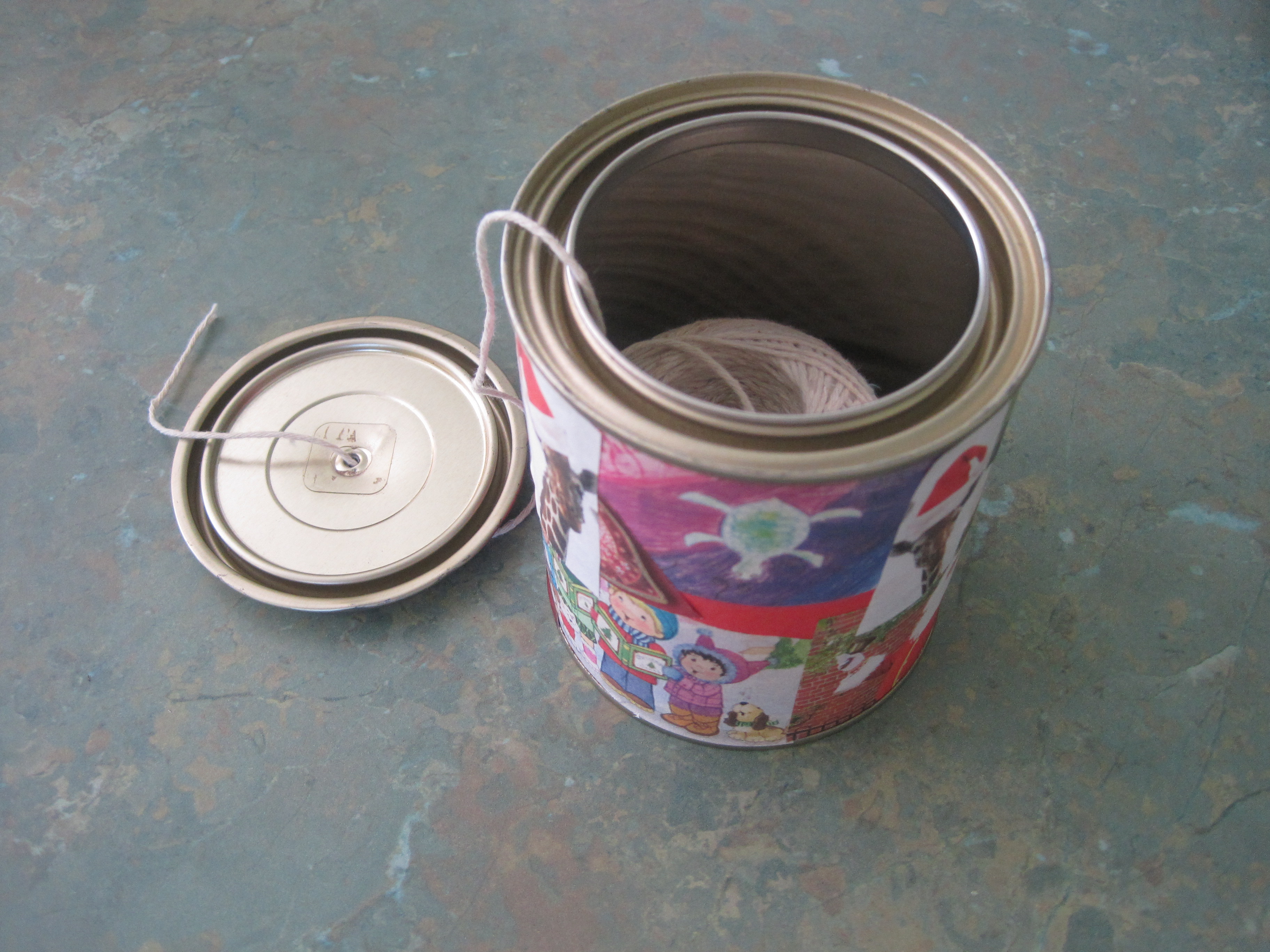 This morning I helped the girls make a gift for Belle. It is a string tin.