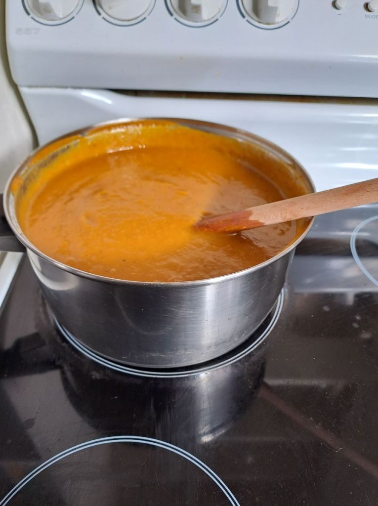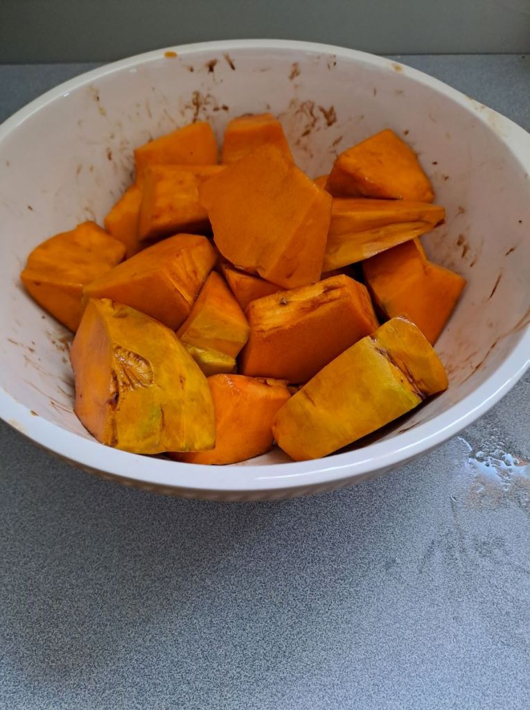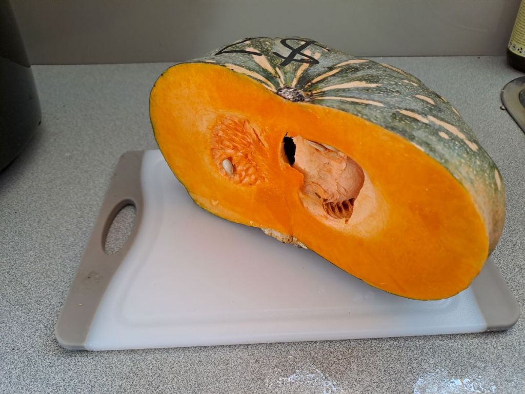 There is only one saucepan in our current accommodation so I only used half of the pumpkin.