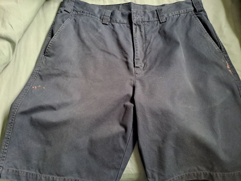 First, a pair of GMan’s shorts which he managed to splash with a substance containing bleach and you can see the results near both side seams below the pockets.