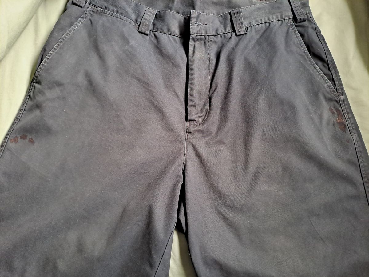First, a pair of GMan’s shorts which he managed to splash with a substance containing bleach and you can see the results near both side seams below the pockets.