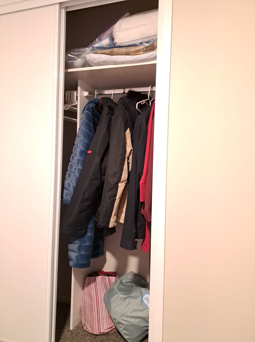 Some extra blankets in a vacuum bag in the wardrobe. The bags on the floor contain 2 airbeds – one is a single and the other a queen-size.