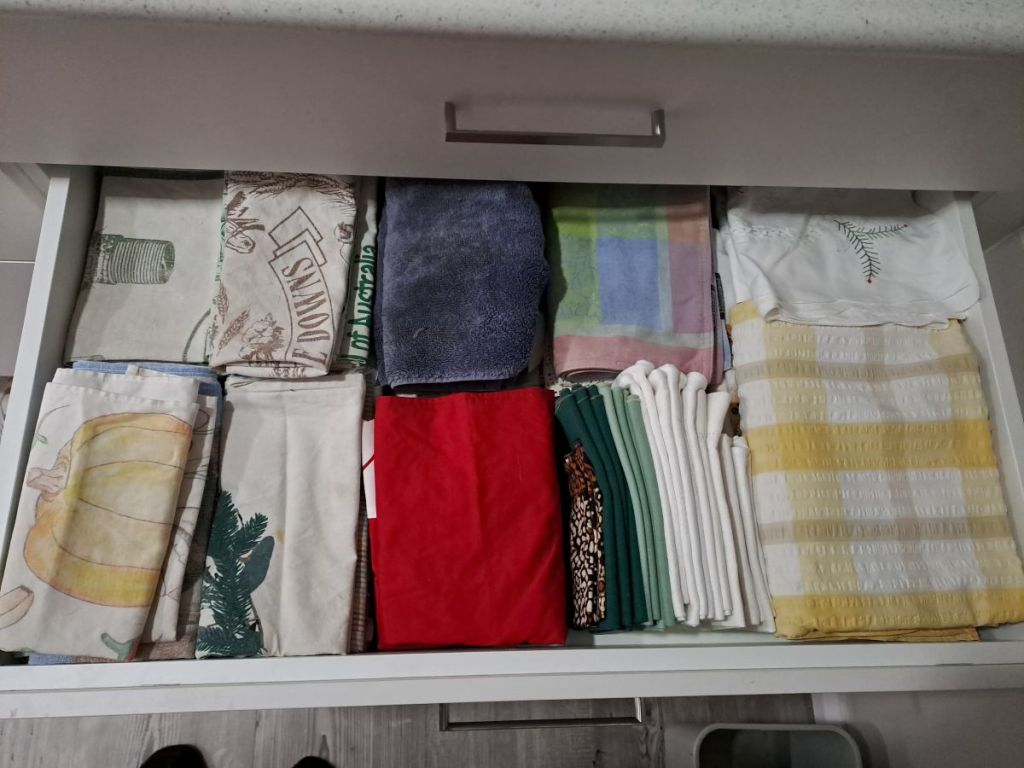 Finally, I have relocated all the linen relating to the kitchen and dining room to a drawer in the extended pantry. These include tea towels, handtowels, table mats, serviettes and tablecloths.