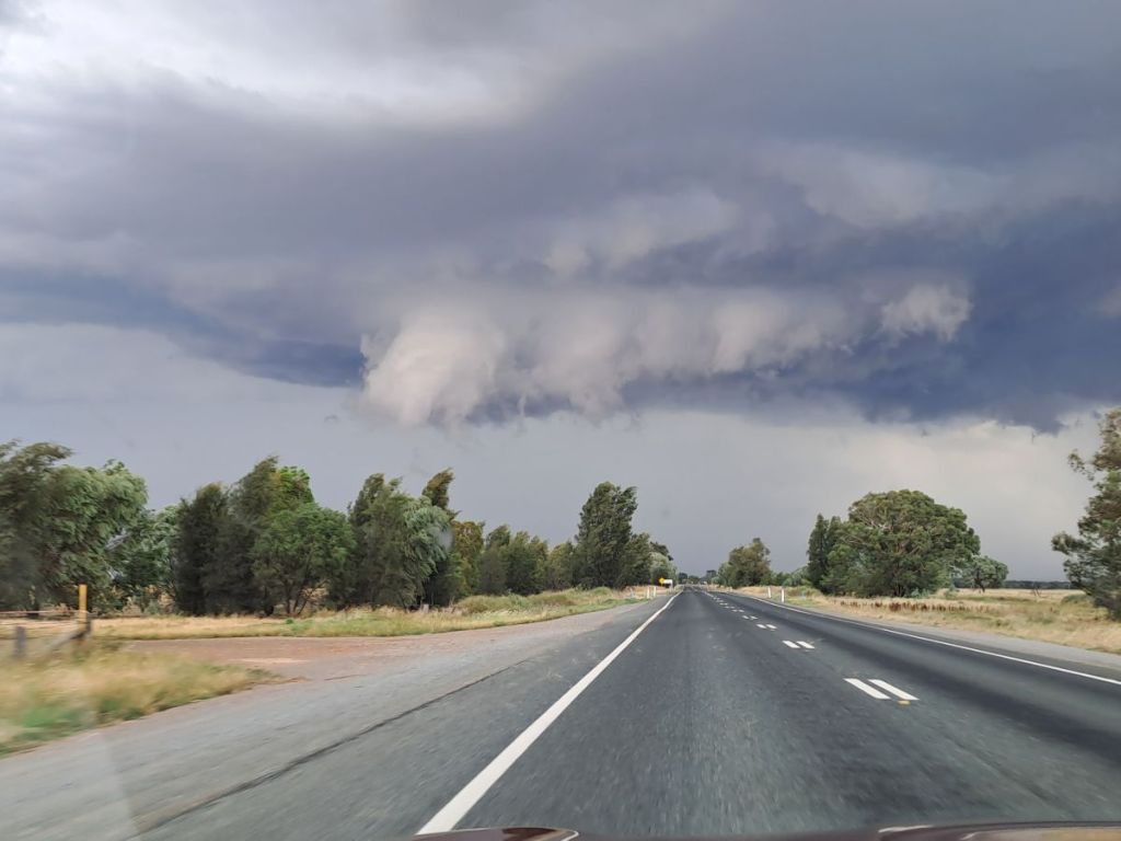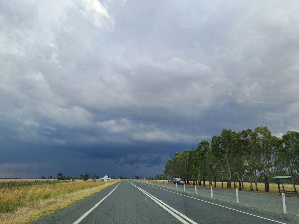 A couple of shots of an approaching storm yesterday. We had to pull off the road as there was a short burst of wind, very heavy rain and some hail. Thankfully, there does not appear to be any damage to the car.