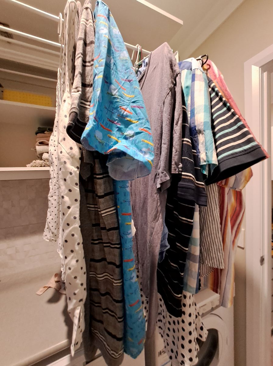 It was a hot, sunny day here and I was able to do 2 loads of washing when we arrived home and get them all dried this afternoon. Now the folding and ironing awaits…………
