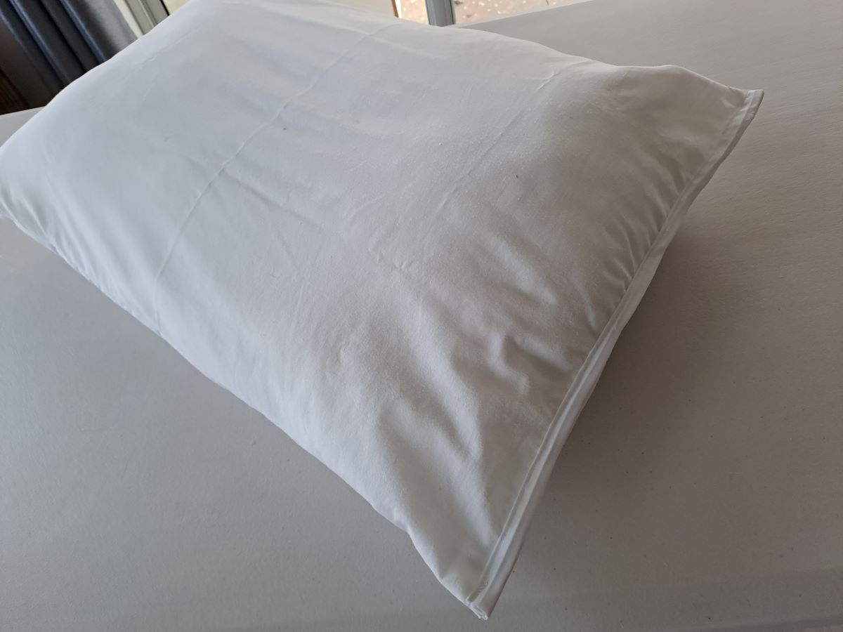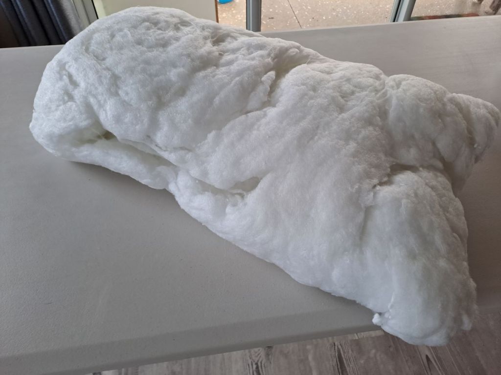The first step was to carefully slit the end of the cover and remove it. The inside of the pillow is simply no more than a compressed bundle of microfibre filling in the appropriate shape.
