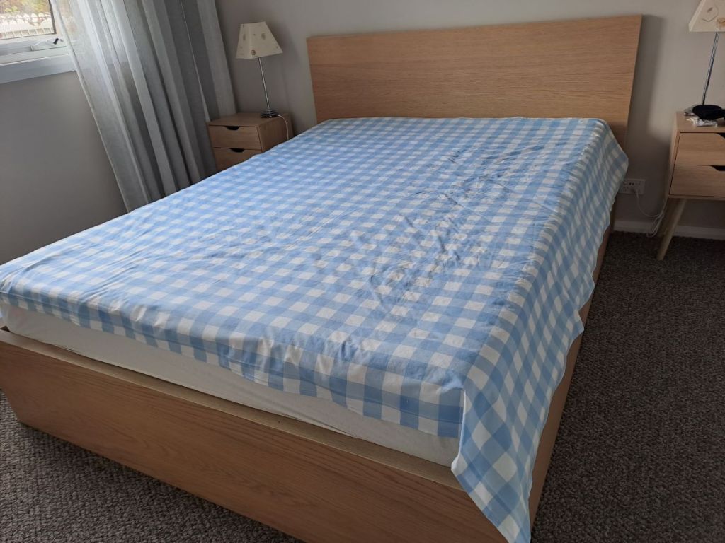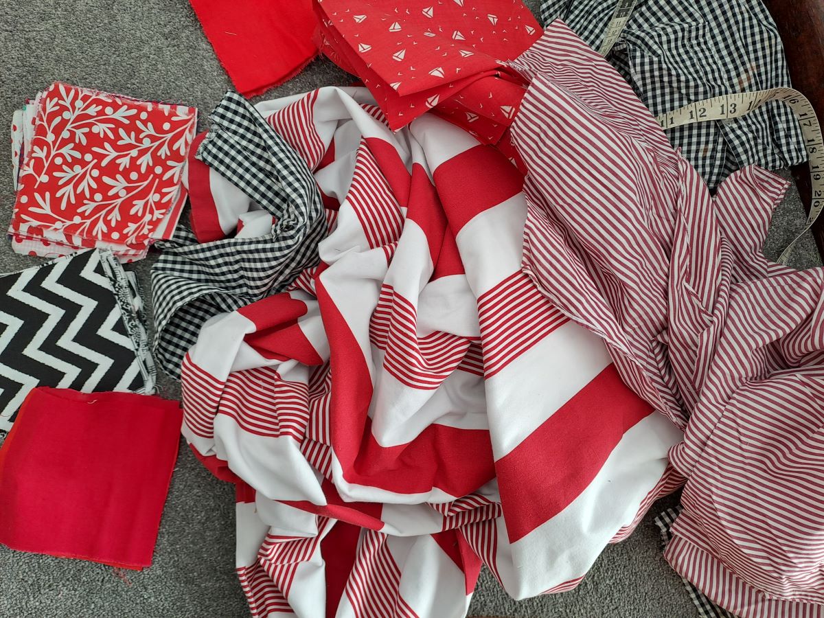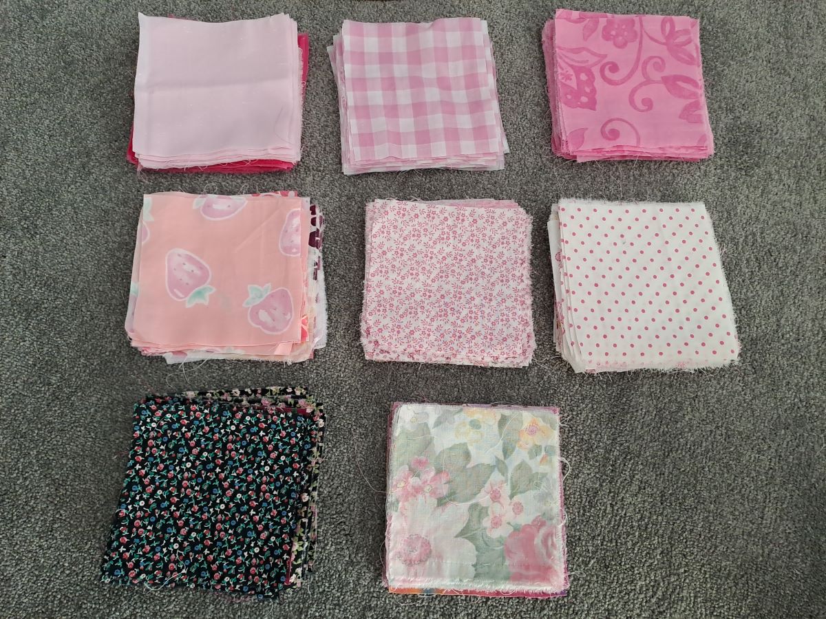 Most of the fabric has been randomly collected from op shops and offcuts from various previous sewing adventures. However, there will be some from a particularly special piece. The small pale pink squares have history. They are from some leftover fabric from a dress which my mother made for herself – probably close to 30 years ago. From those leftovers I made a dress for my granddaughter which she wore on her first birthday.