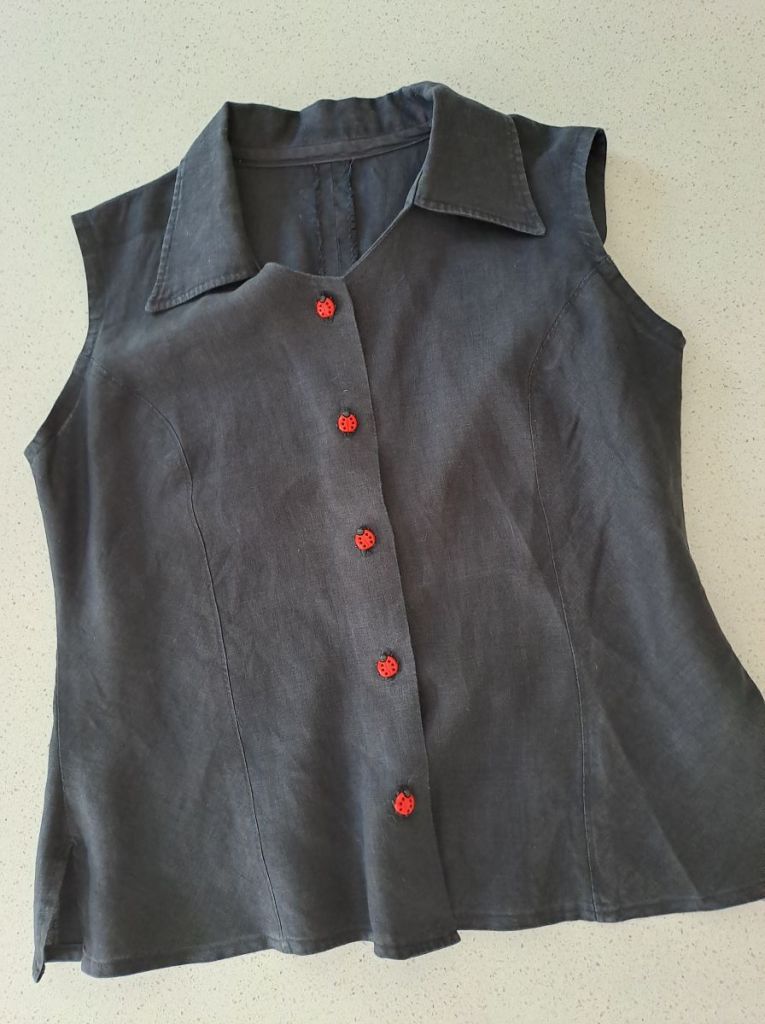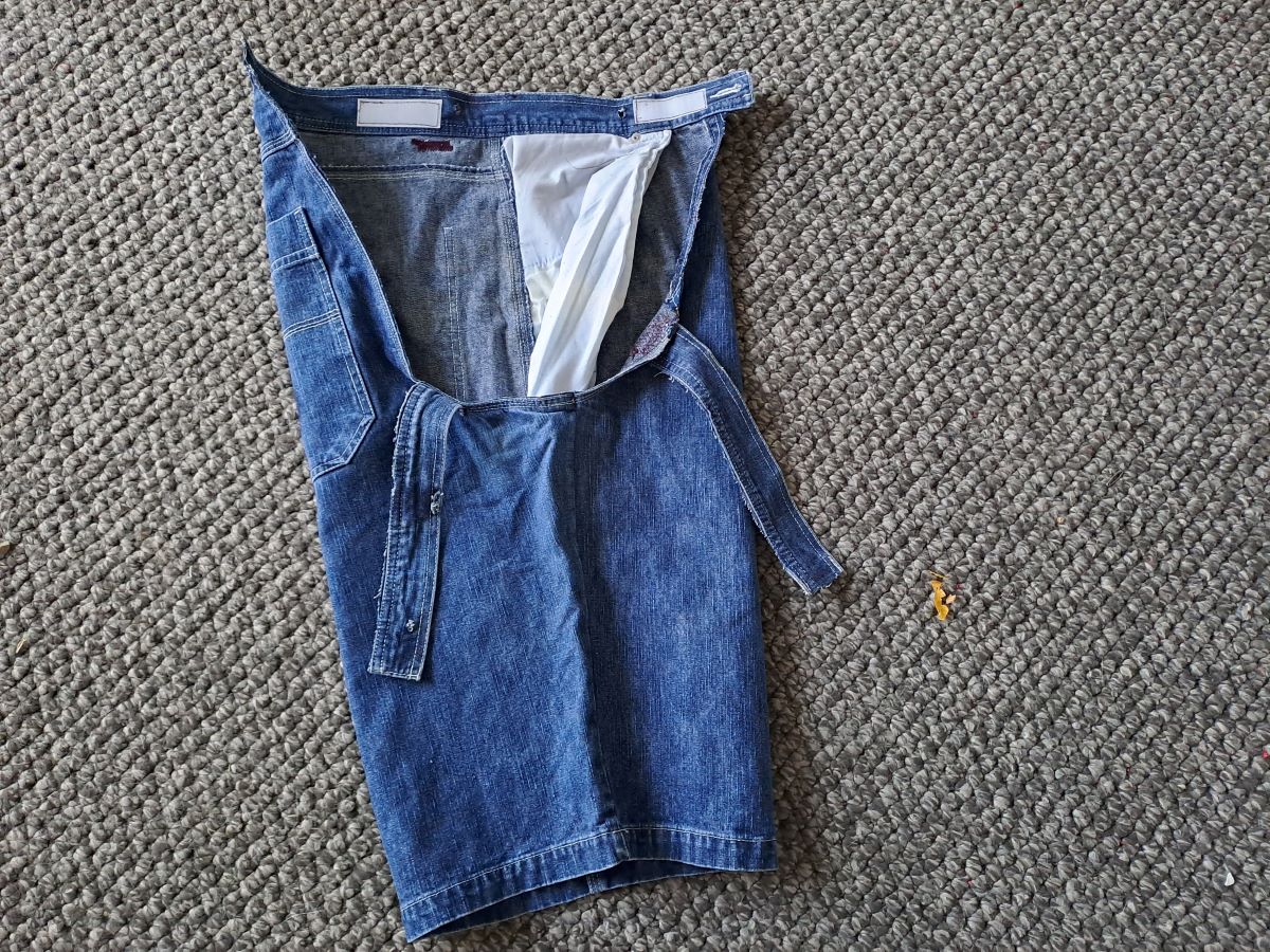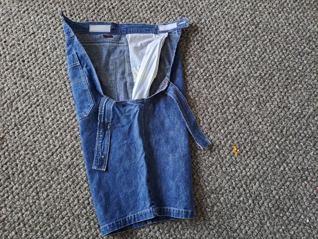 I used the excess length of the original trousers to add pieces to be able to recut all of the pieces for the boxer shorts using my own pattern. I used flat felled seams for joining the extra pieces as well as the main construction as I always do. These seams are great as there are no raw edges on the inside as well as being extra strong due to the two rows of stitching.