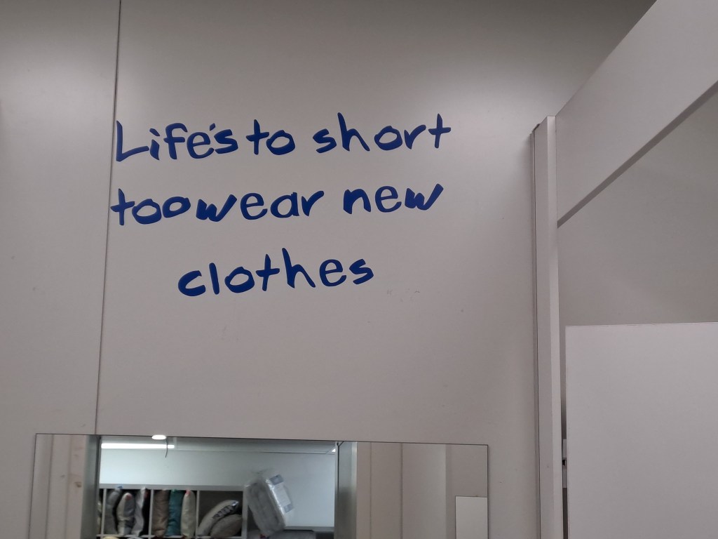 On our way home from Sale we stopped in Kyneton with the specific purpose of going to the Salvos op shop which I have previously found to be very good. We didn’t find anything on this occasion, however, we parked the car directly outside a secondhand shop which happened to have a rack of clothing on the footpath and I spied this jacket on the end of the rack. It has a fully detachable hood and lining as well as inside and outside pockets and a drawstring option at the waist. It will be a great addition to GMan’s selection of jackets and perfect for our overseas trip in December.