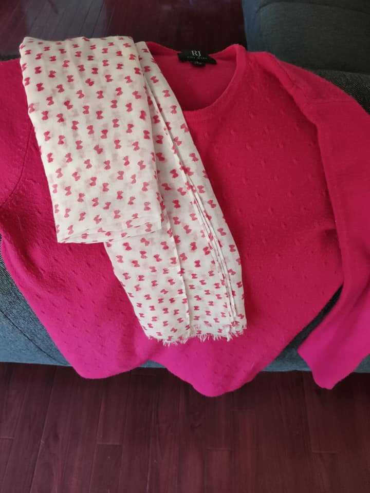 It is almost 5 years since I made a rather brave declaration that I was not going to buy any brand-new clothing for 5 years. Have I succeeded? Almost. I bought this navy dress to wear to my niece’s wedding in early 2021. It was massively reduced in price to $21 and I have worn it many times, including today. It was cold and we were headed to Ballarat so I added this warm scarf which I picked up when op shopping last week. I had really thought that it may not get an airing until next autumn but the weather today dictated otherwise.