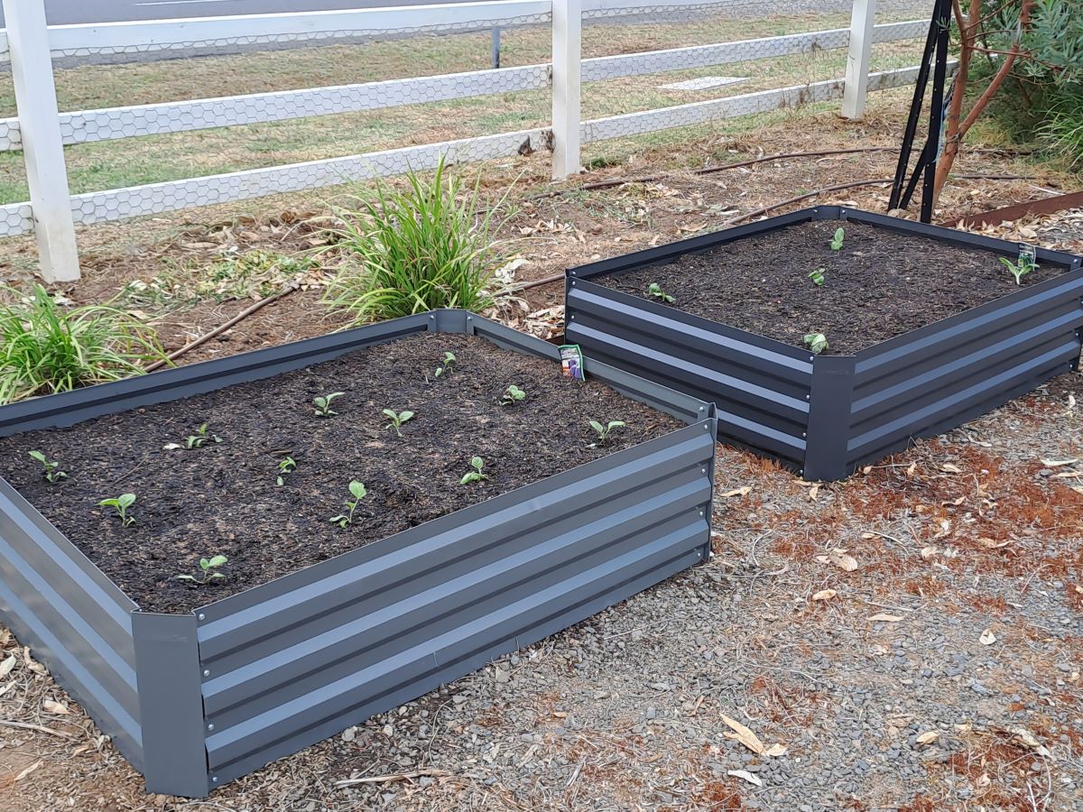 Our other purchase was two raised garden beds which we have placed just inside the front fence for the time being. The landscaping at the front may change once the driveway entrance is eventually relocated but we decided that we really needed a bit more growing space now. These have been planted out with zucchini seedlings in one and eggplant in the other.