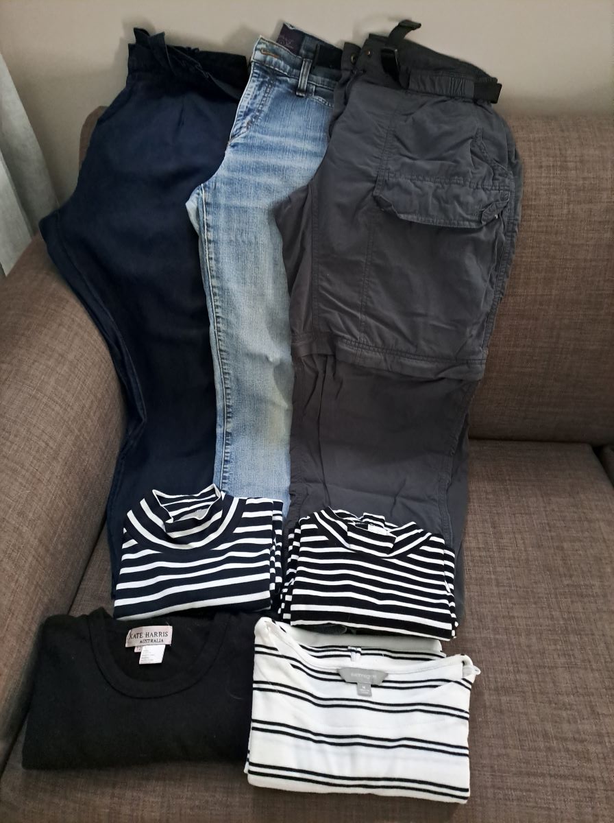 We have plenty to do in the next couple of days. The packing is well underway but a little tricky as it will be warm in Honolulu but San Francisco, in northern California, is still quite cool and showery. In fact, I am probably taking as much for 2 weeks as I would for 2 months. I have made a couple of tweaks since I took these photos. I am also taking a jacket, vest and scarves which are not shown.