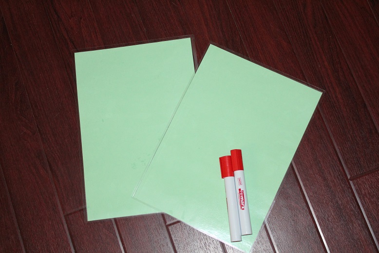 I finally got around to cutting up the manilla folder and laminating the 2 sheets. The second sheet will become a shopping/to do list in the pantry. I have 2 whiteboards pens to go with them so now all I need to do is to attach them.