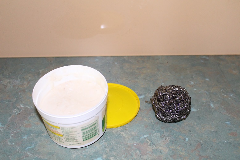 I have seen tips about using eucalyptus oil for these jobs as it tends to dissolve the residue. However, it is not terribly effective at removing the softened adhesive. The bicarb and dishwashing liquid in the recipe and a steel scourer made short work of any last bits.
