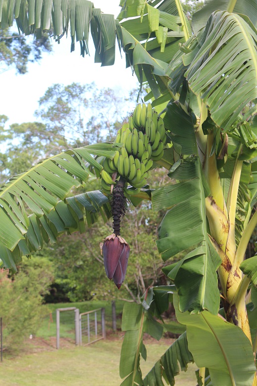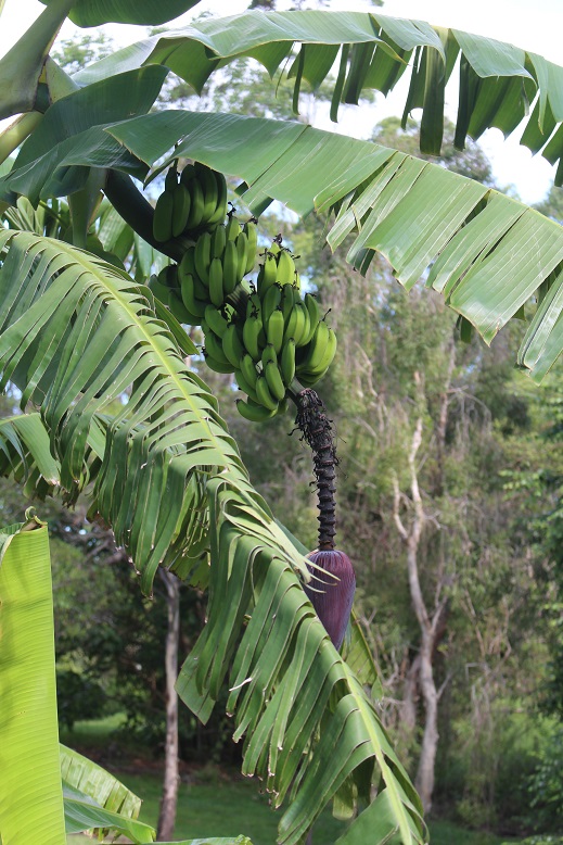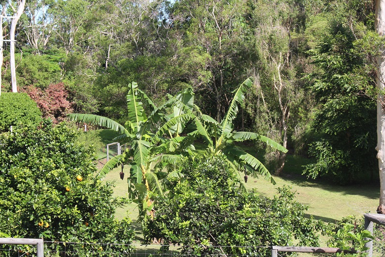 We have had bananas growing here previously but this most recent clump was planted where we can see them from the house rather than up the back and totally out of sight. This is the view of them from my kitchen window.