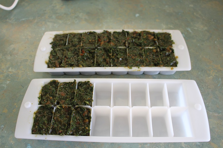 I now have a bag of frozen cubes of basil pesto which will thaw quickly and easily for a multitude of uses.