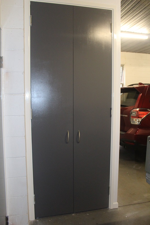 A large floor-to-ceiling storage cupboard in an unused alcove next to the bathroom.
