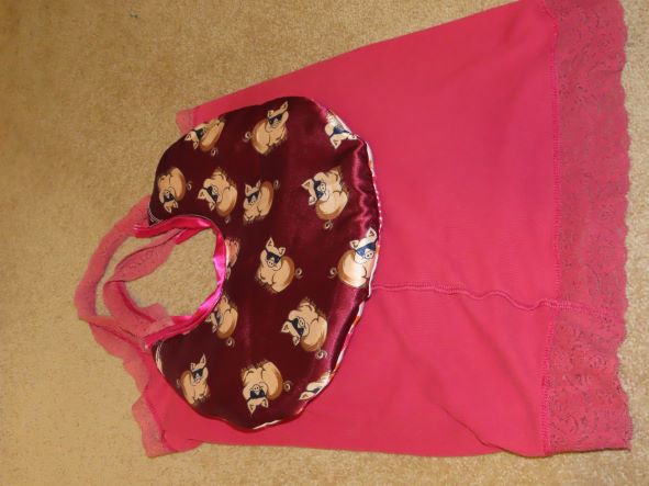 Then I chose a small piece of very lightweight smooth satin from my stash for the side facing the skin. I used a piece of very thin cotton sheeting for the other side of the pocket for the padded inserts.
