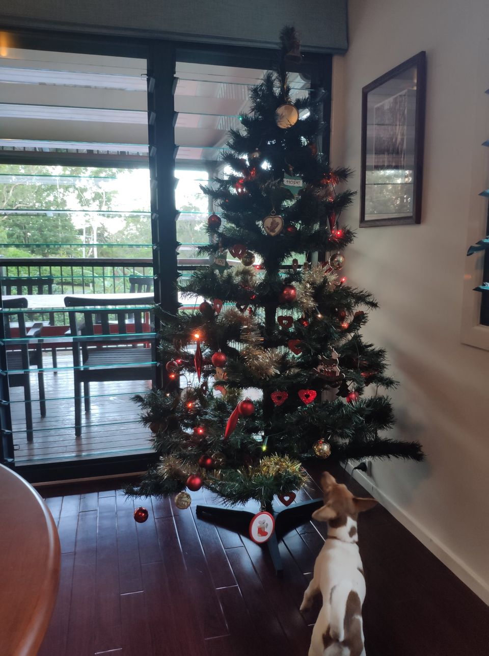 I put up the Christmas tree on Sunday and our small dog was mildly interested. So far she has not been tempted to attack the tree.