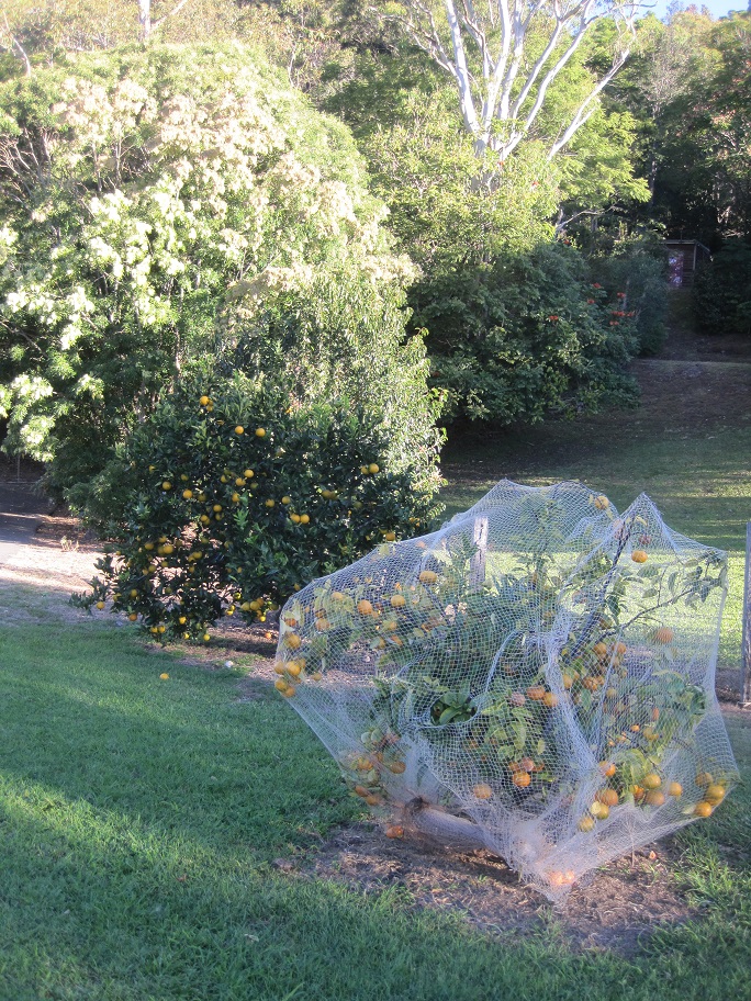 When we were in Melbourne yesterday we bought 4 large green plastic pots for the princely sum of $9 each. So the as yet unidentified citrus is now repotted and placed on the north-facing terrace outside the sewing room.
