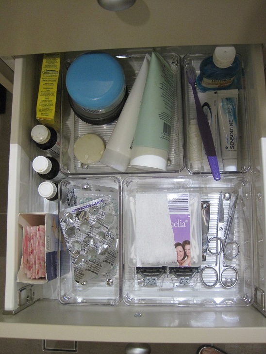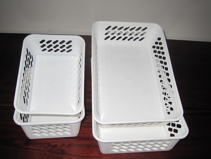 Storage is not an alternative to decluttering but it does help to be able to maintain a level of organisation. However, I do not advocate rushing out to buy specific matching containers. As these photos show it is possible to utilise various containers that you probably already have available.