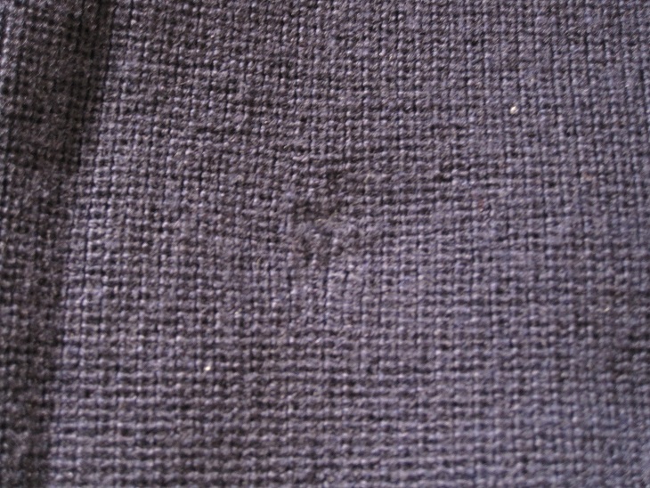 When I was hanging it on the clothesline a couple of days ago I noticed a hole on the front – not far from the armhole or shoulder seam. The hole did not look like moths had eaten but more like I had caught it on something although I have no memory of doing that.