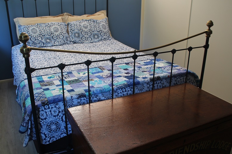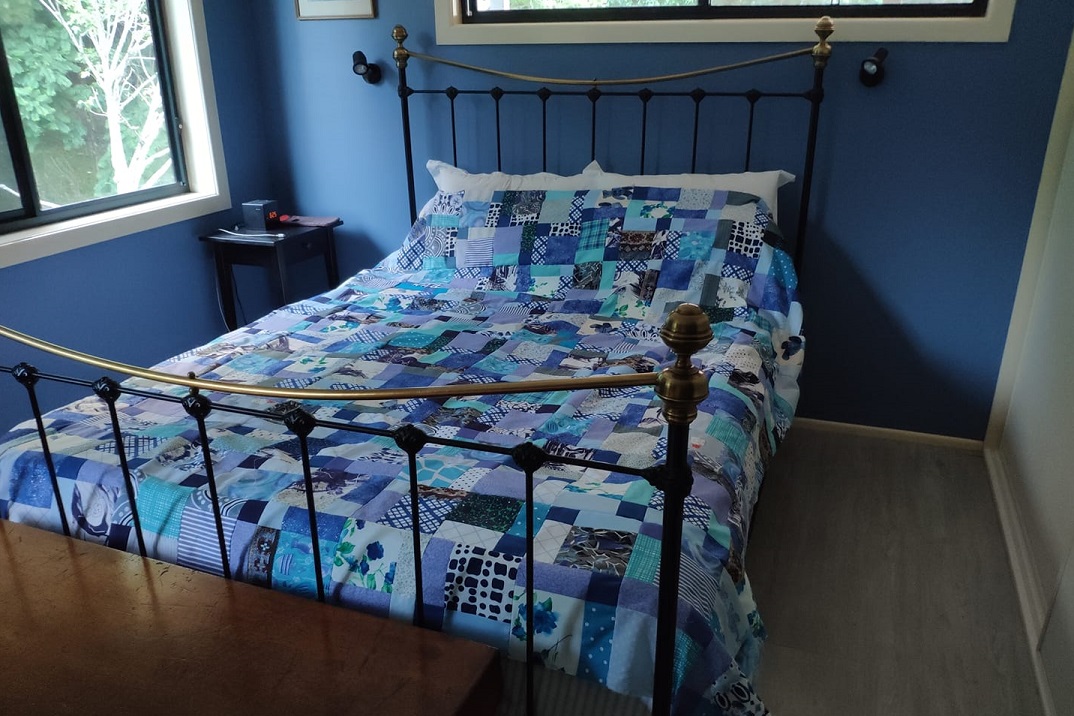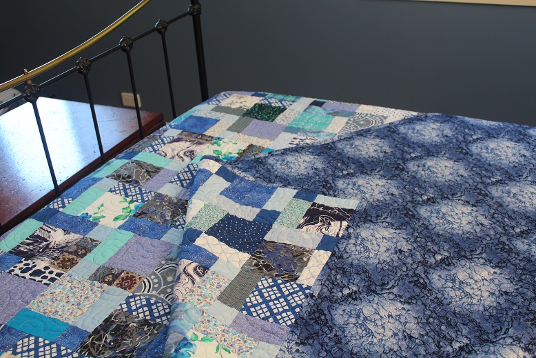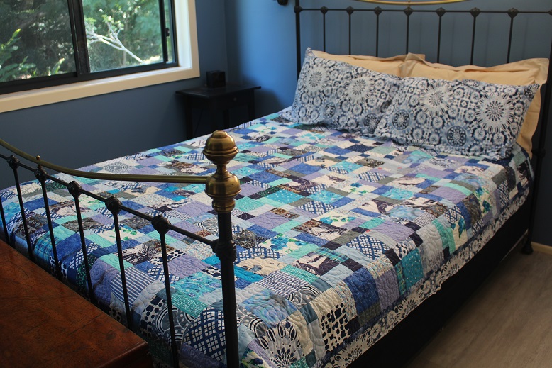 The backing fabric from a thrifted doona cover really highlights the quilting.