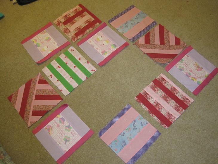 This is a knee rug which I have made for my mother for her birthday. Like the other work I have shown you, it is based on a disappearing 9 patch block.