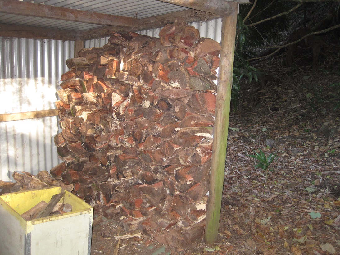 We have almost finished demolishing the old chicken run and this has entailed removing the side of the woodshed which was adjacent to the run. The woodshed will remain and a new side panel built to keep the weather out and the wood dry. This has prompted us to look critically at all of the various piles of wood – everything from tree branches to leftover material from previous building projects. We are attempting to get all of the suitable firewood in one place in the woodshed so that we can easily access it when needed in the winter months. One day the firewood ‘module’ will be complete!