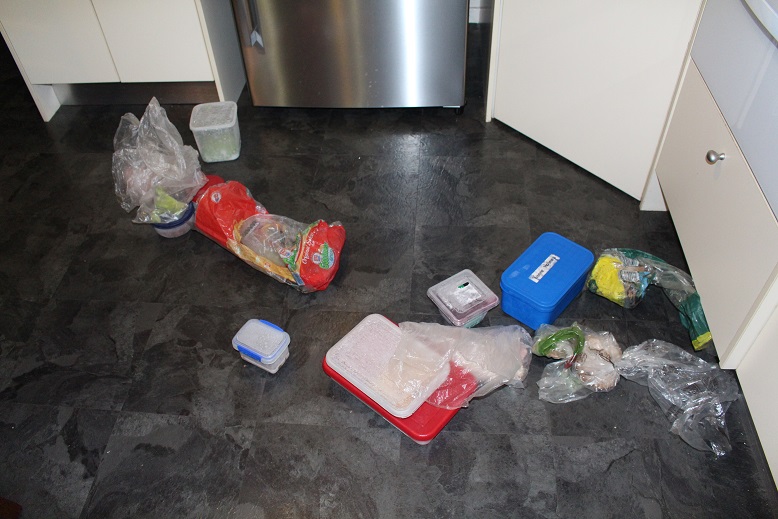 A jar of prepared chickpeas was thawed out for a vegetable curry for dinner – it is chickpea, pumpkin and eggplant.