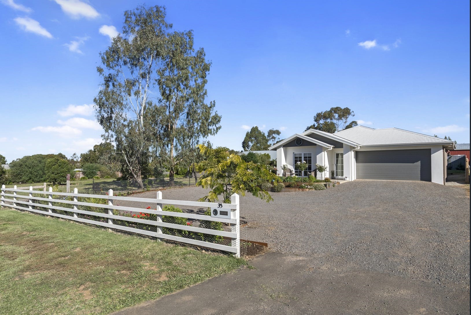 This photo shows the front of the house originally. By the time we bought it the double garage had been converted to a lounge room but there was no additional landscaping outside.