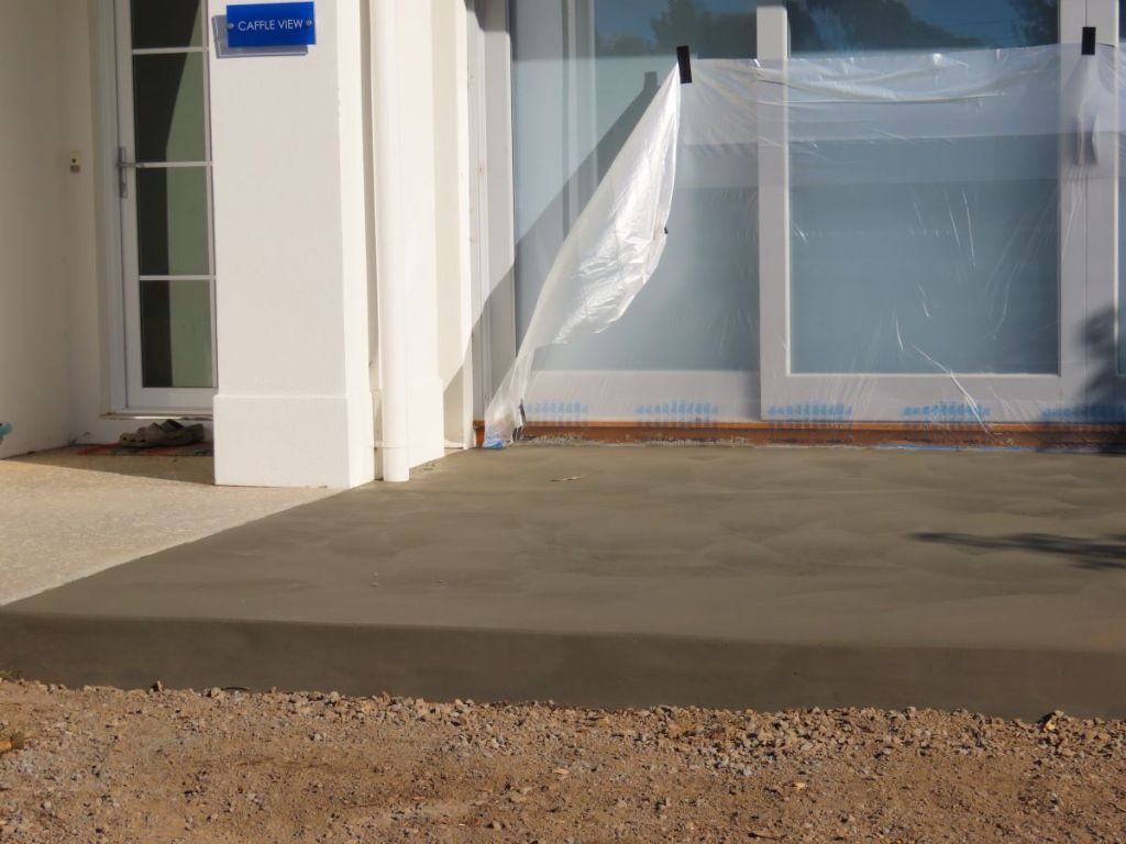 After quite a bit of discussion we decided to extend the small terrace at the front of the house to include the area in front of the lounge. We contacted a concreter a couple of weeks ago and after finalising the details of what we wanted everything fell into place quite quickly.