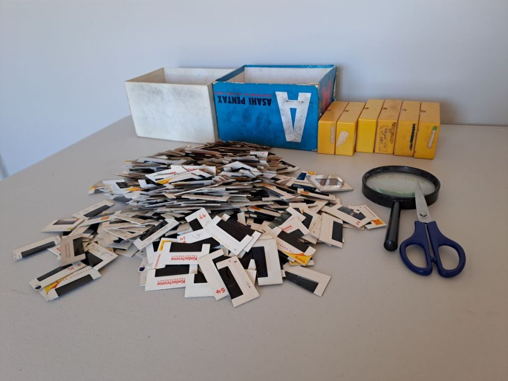 I had all of the digital copies and my sister had all of the physical slides. When we were together at Christmas we went through them again to check that none had been missed in the scanning process. I then brought the slides home with me as I could see that there might have been some useful information on the frame of each slide, however, I needed a magnifying glass to check. This is what I have been working on intermittently for 2 weeks and that step is now completed.