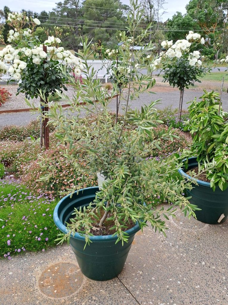 A view from just outside the front door. The plant in the pot in the foreground is an olive and it is covered with thousands of buds. Here’s hoping……………………