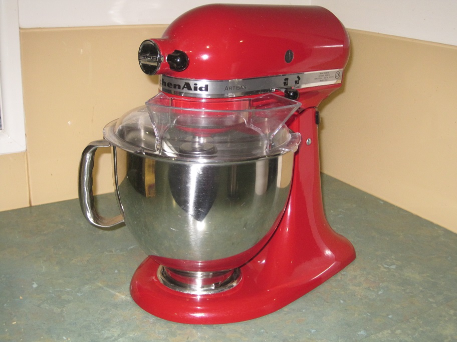 The far end of the extended bench is home to the Kitchen Aid stand mixer and airfryer, both of which are used frequently.