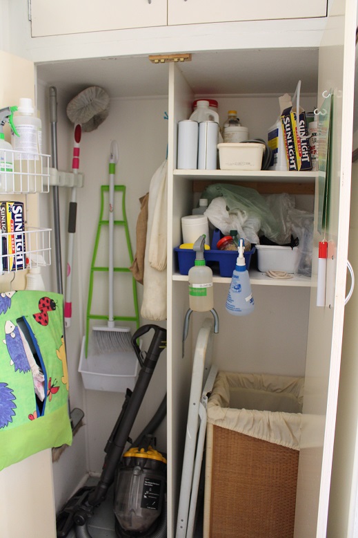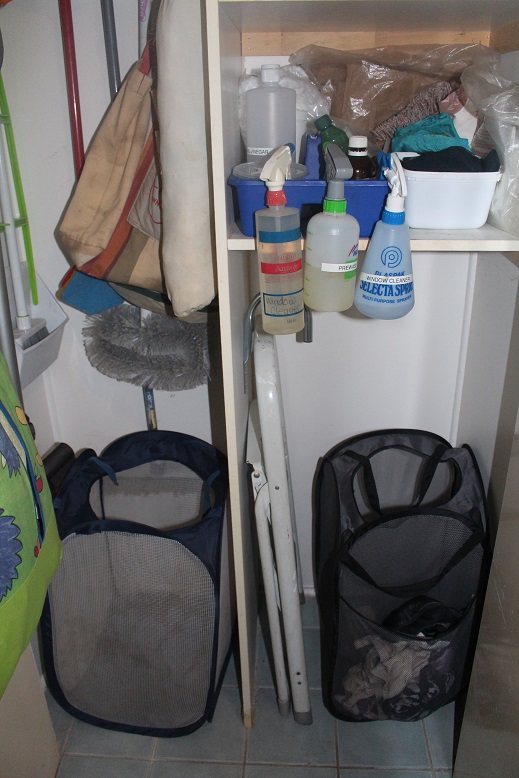 I recently acquired another mesh foldable hamper from my mother’s belongings and this prompted me to reconsider how things were arranged. The dehumidifier was rehomed to a cupboard under the laundry bench and I then put the 2 matching hampers in the tall cupboard. They are now designated as ‘lights’ and ‘darks’ so I can see at a glance when a particular load needs doing.