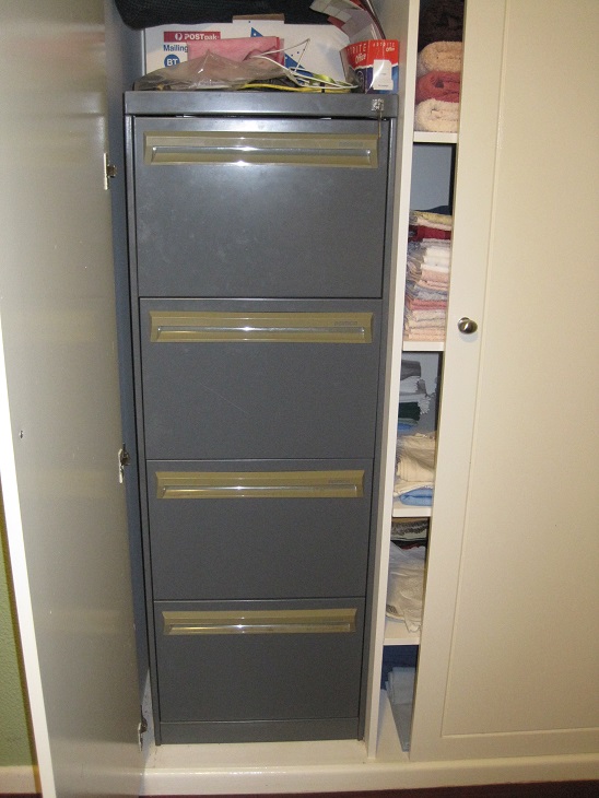 The business of our income and expenditure includes bank statements, tax returns, superannuation information, rates, utilities and various insurance policies.  We have a filing cabinet in here.