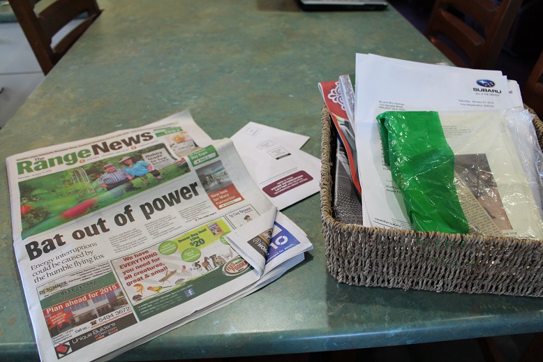 2 newspapers – to be read tonight then added to the recycling