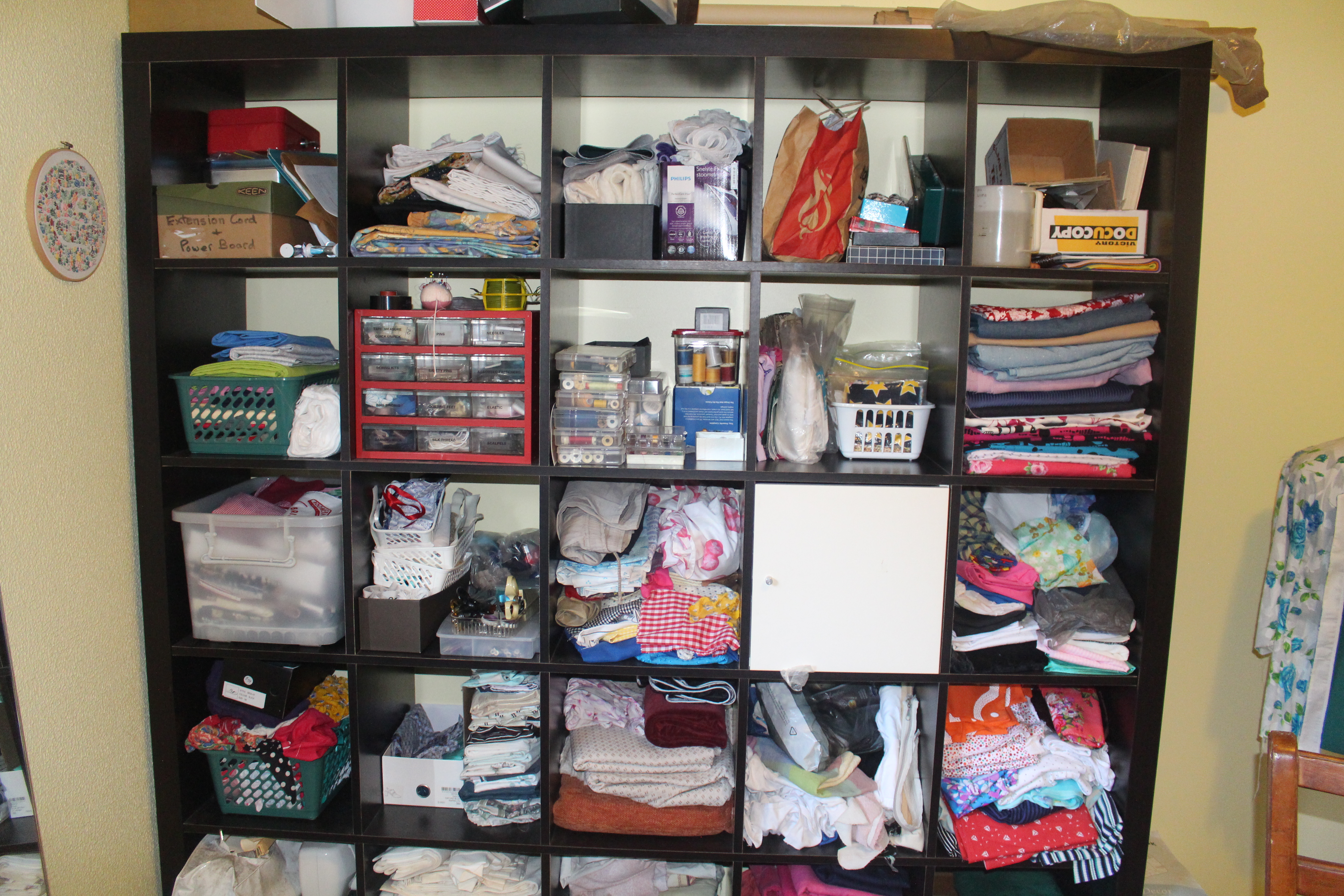 The horizon is clear as far as sewing projects go so I decided that it was time to make a serious effort to clean up and sort out the fabrics, patterns etc. Many of these are gifted, thrifted, hand-me-downs or scraps.