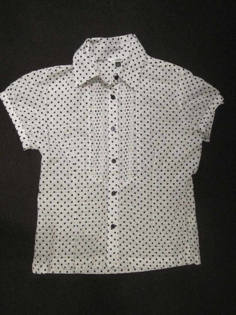 After wearing it for a couple of days when I first received the top, I washed and ironed it. While ironing it, I noticed that there was only one button on the placket. The button was white and I searched my collection of numerous white buttons but could not find any suitable ones but discovered that I had 2 pink buttons that were the right size.