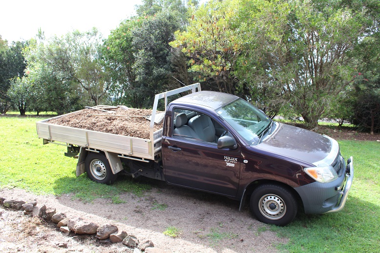 Last year I decided on the final format for this area. We will have a selection of flowering hibiscus in front of the verandah. We bought 5 hibiscus at the Garden Expo in July last year and they have been progressing well. However, one of them was beginning to struggle and we realised that it was being shaded by one of the grevilleas. We cut down the three remaining shrubs, mulched everything that was small enough to go through the mulcher and cut the bigger branches into manageable lengths.