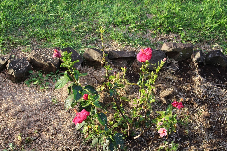 You can also see some of the hibiscus. They seem to really be enjoying the full sun now that the overhanging shrubs have been cut down. We have been offered a huge pile of mulch from the neighbours so that will go towards completing the mulching of this area. The next job will be to buy some more hibiscus.