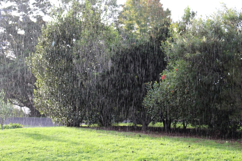 When we came here there were numerous shrubs/small trees planted close to the front verandah. They provided some screening and privacy from the road. Over time we planted a screening hedge of native shrubs along the boundary so the ones closer to the house became less important from a privacy point of view. We extended the area in front of the verandah and slightly reduced the amount of lawn. The shrubs have been pruned several times to try to keep the blow the level of the gutter.