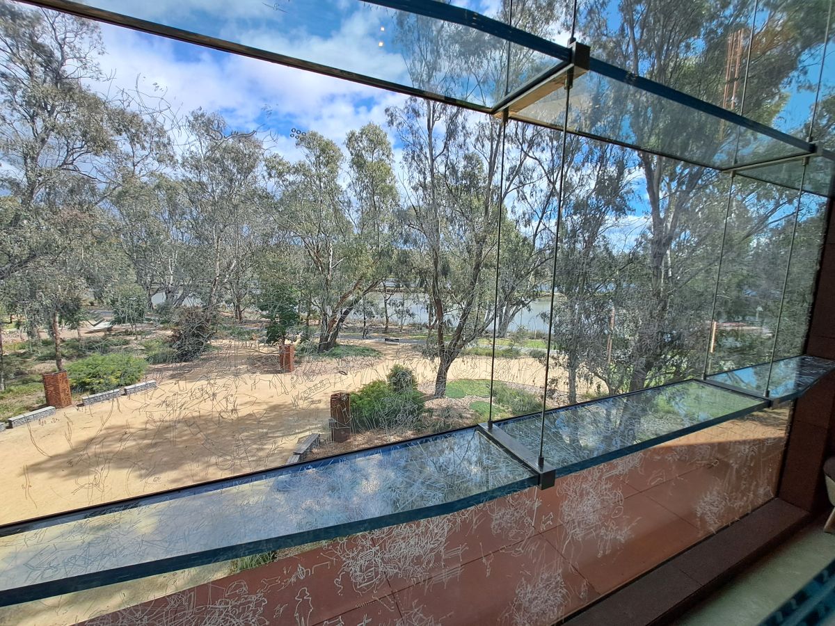 The spectacular patterns on the bark of these eucalypts caught my eye from the outdoor area outside the museum cafe where we had a delicious lunch. The food was excellent and the majority of the menu was gluten free.