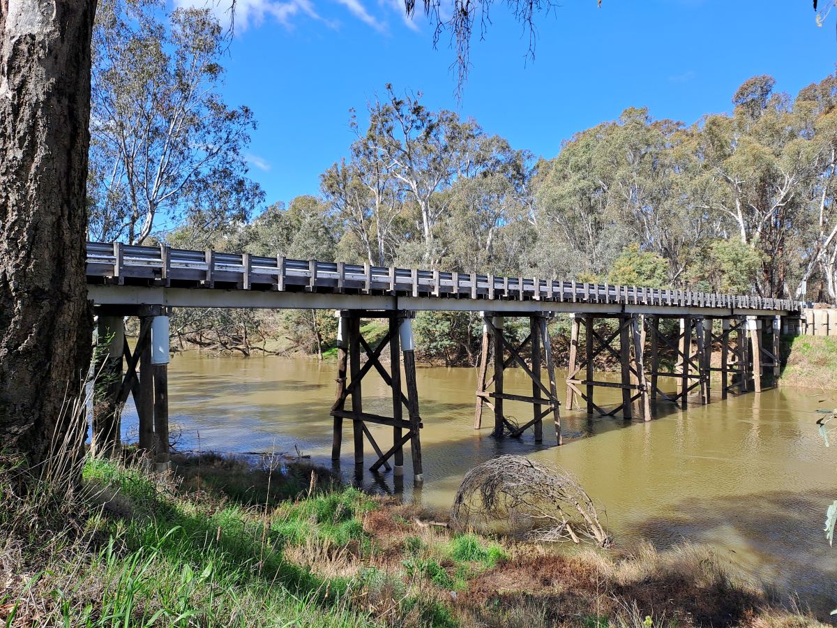 After we left Shepparton we took a short detour off the main road to see the historic Toolamba Bridge. The single lane, timber planked bridge which spans the Goulburn River was opened in 1900.