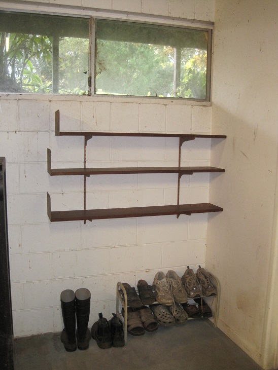 GMan painted this section of the workshop recently before we installed the hanging rack. It is a shoe rack which my mother had used behind her bedroom door for shoe storage. I brought it home last year with only a vague notion of how I might use it. This has proved to be the perfect purpose and location.