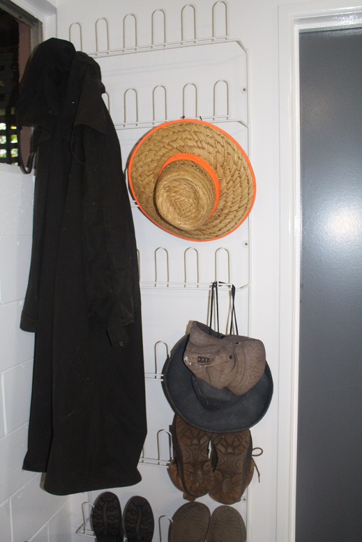 Today we put the finishing touches to what I like to think of as a mini-mudroom. It is certainly a useful addition in weather like today – we have had 35mm of rain so far.